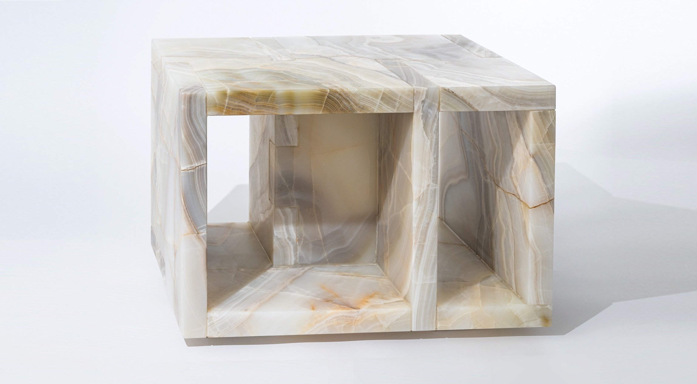 Interlocking planes of 5cm solid white onyx.