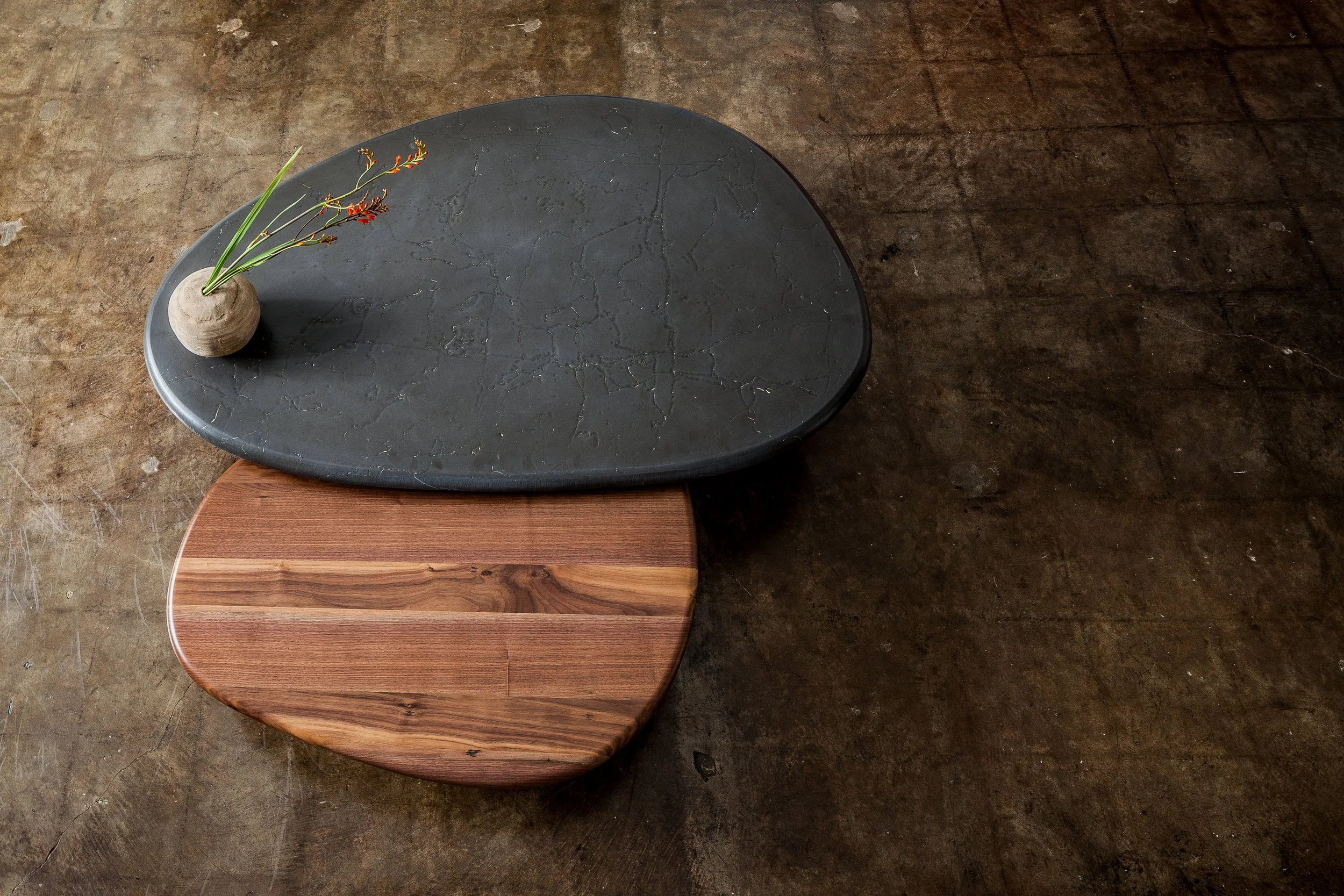 This example in solid walnut and Grafite Grey marble.